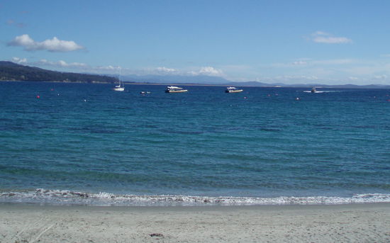 Wir fuhren zunächst mit dem Bus nach Kettering, wo wir mit einer kleinen Autofähre nach Bruny Island übersetzten. Die Insel wird durch den D'Entrecasteaux-Kanal vom Festland getrennt. Diese Gegend wurde entdeckt von dem Franzosen Bruny D'Entrecasteaux, der kurzerhand seinen Namen aufspaltete und alles nach sich benannte.