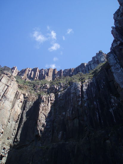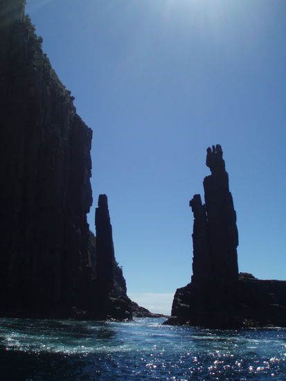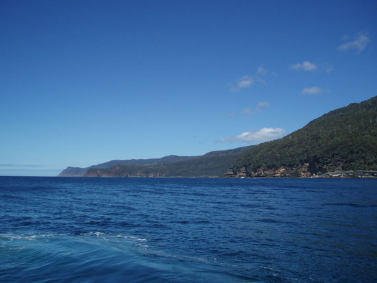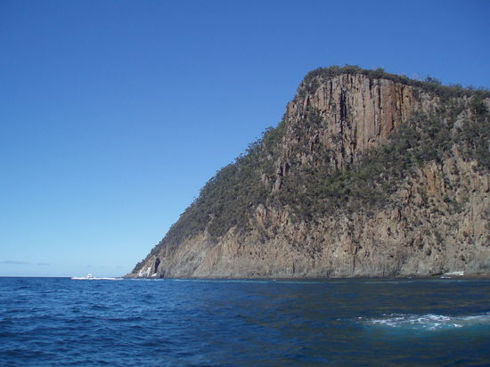 Wir fuhren nach Adventure Bay, einem kleinen Ort auf der südlichen Hälfte der Insel, wo wir erst einmal Tee und köstliche Blaubeermuffins bekamen, dann ging es auf unser Boot. Natürlich gibt es auf der Insel viel zu unternehmen (Strände, Wanderwege etc.), aber bei dieser Tour ging es darum, die Küste der Insel vom Wasser aus zu sehen. Das Boot war wieder ein schnelles, wendiges wie beim Delfine beobachten in Perth - perfekt, um die Küstenlinie Bruny Islands zu erforschen.