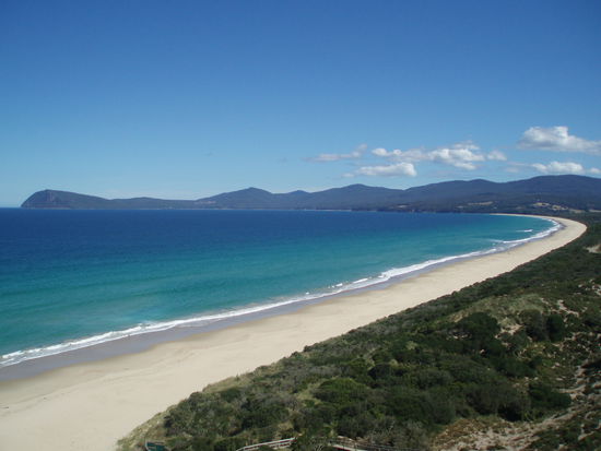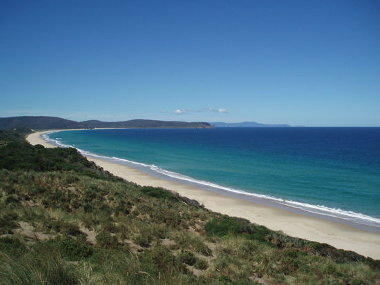 Bruny Island besteht eigentlich aus einer Nordinsel und einer Südinsel, die nur durch diesen schmalen Landstreifen (The Neck) verbunden sind