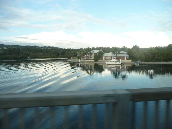 Nächsten Tag dann auf nach Noosa, einer eher doch reicheren Stadt direkt am Meer gelegen mit schönen Nationalparks und auch für gute Surfstrände bekannt. Das absolut faszinierende in Noosa ist, dass sich das Meer ziemlich weit über Bäche und Lagunen in die Stadt ausbreitet, und die Böschungen und Buchten sind alle aus feinem Sand, Kilometer weit in der Ortschaft sogar noch, das hab ich noch nie gesehen und gibt dieser Stadt einen besonderen Reiz. Auch die Buchten dort haben einen besonderen Reiz zum surfen, nur für mich nicht! Eine brutale Strömung, man muss paddeln, um überhaupt an einem Fleck zu bleiben, und falls nicht, ist man in einer Minute 200m wo anders. Und eine Welle nach der anderen, nix für uns. Für die Profis ist es schon der Wahnsinn, weil die Wellen wegen der Strömung schief hereinbrechen, fahren einige locker 1-2 Minuten durch auf einer Welle. Nächsten Tag probierten wirs in einer anderen Bucht, doch nach zwei Versuchen (und sogar davon mein längster stand) hing ich meine doch schon sehr kurze Karriere an den Nagel. Nachmittags sollte es eigentlich mit dem Kajak in den Nationalpark gehen, doch das Wetter machte uns ein Strich durch die Rechnung, es regnete stundenlang durch, das erste mal in meinem Urlaub.