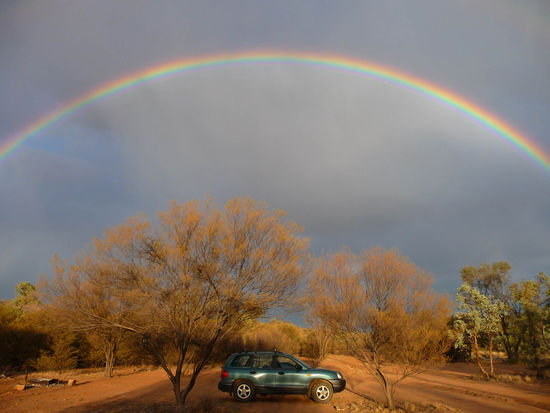 Mit den Eindrücken des "Oodnadatta Tracks" im Rücken machten wir uns sehr erwartungsvoll von Coober Pedy in das "Rote Zentrum" zum Ayers Rock auf, dem Wahrzeichen Australiens. Und was uns laut einigen Erzählungen, Berichten und Bildern alles erwarten sollte: Absolut Nichts, stundenlang keine Menschenseele auf der Straße, sehr lange "Roadtrains" (Lastwägen mit noch so vielen Anhängern), deren Gegenwind einen fast von der Straße bläst, Hitze, Dürre, endlose Sicht, unzählige Kängurus und Kamele am Horizont, usw.! Einfach ein riesiges Abenteuer!