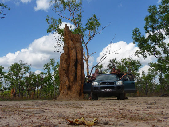 Mit Mario und dem Holländer Alfredo ging es dann für zwei Tage wieder etwas südlicher in den "Litchfield-Nationalpark", einfach traumhaft und in unseren Augen schöner als der danebenliegende "Kakadu-Nationalpark": Es gibt Termitenhügel, die höher als 5 Meter sind, Wasserfälle und herrliche Becken, die zum schwimmen einladen. Sehr relaxte Tage dort, man reist von Wasserloch zu Wasserloch, erfrischt sich dort ein wenig und schon geht's weiter zum nächsten Wasserbecken.