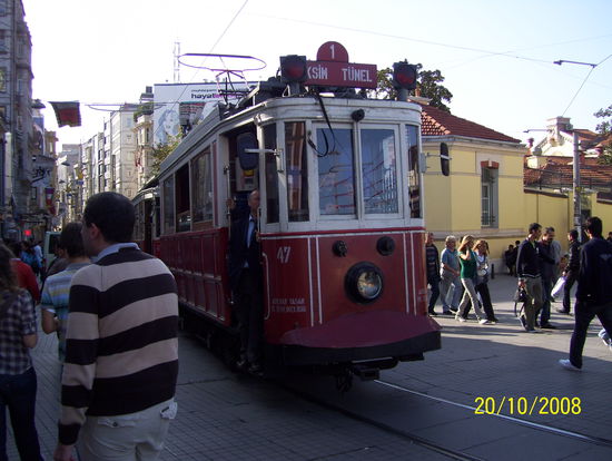 Mitten durch die Istiklâl Caddesi führte eine ansehnliche nostalgische Straßenbahn und gelegentlich patroulieren Polizisten in ihren gepanzerten Autos (leicht zu verwechseln mit dem Batmobil) die Straße entlang. Wenn man mal ein ganz merkwürdiges höfliches Klopfgeräusch hinter sich hört, das stammt tatsächlich vom Polizeiwagen und bedeutet nichts anderes als, bitte den Weg freimachen! (eigentlich sollte mich das nicht wundern, denn in einem Land in dem nahezu jeder Privatmann die Türklingel Marke "Vogelgezwitscher" installiert hat, ist geräuschtechnisch alles möglich)