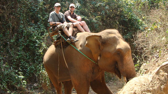 Im laufe des Vormittags wurden wir im Gasthaus abgeholt. Als die Gruppe komplett war, ging's direkt zur Touristpolice, bei der u.a. zwecks Sicherheit Kopien der Pässe aller Teilnehmer hinterlegt werden. Nachdem dies erledigt war, fuhren wir ca. 1 1/2 Std. zum ersten Programmpunkt, dem Elefantereiten. Unsere 25 jährige Lady war so ziemlich das größte Tier der Herde.
