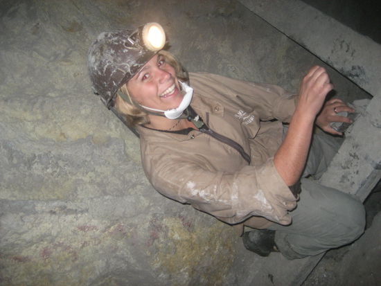 Waegelchen kennt, wurde hier regelrecht zum Abenteuer. Nein, es war kein Witz, als unser Guide sagte wir sollten diese Leiter senkrecht 30 Meter hinabklettern (ungesichert versteht sich). Langsam begriff ich, warum ich bei dieser Tour das einzige Maedel war, und die andere Franzoesin die Mine nach 50 Metern wieder verlassen hatte.