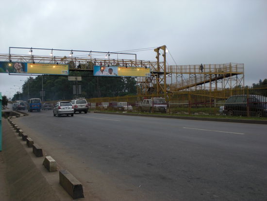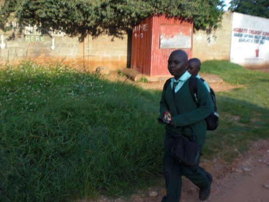 Um Kurz nach 7 geht es dann unter Führung meines Kollegen und den Sicherheitsmann grüßend aus dem Schiebetor hinaus und den von nächtlichen Regenfällen aufgeweichte lehmige Polterweg Richtung Hauptstraße. Die Sonne lacht und auch die uns passierenden Schulkinder in Krawatte und Uniform werfen uns neugierige, lächelnde Blicke zu. Schnell erreichen wir die betonierte, zweispurige Hauptstraße, deren Geruch und Smog bereits in unserer Nase liegt. Wir nähern uns einer Menschentraube die sich um einen blauen Kleinbus, dem Blick zu urteilen aus den 80-gern, sammelt.