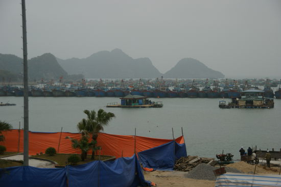 Wir bekamen noch einen Tipp: von Hon Gai kann man mit der Fähre nach Haiphong fahren. Nach einem fürstlichen Frühstück (Ei, Käse und Marmelade, incl. reichlich Kaffee) fuhren wir mit dem Taxi (70.000 d) nach Hon Gai und dann ... die Fähren wurden eingestellt, da im Moment nicht so viele Touris da sind ... um 15.45 Uhr sollte es dann mit der Fähre nach Cat Ba weitergehen.