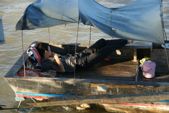 Mit etwas gemischten Gefühlen aufgewacht, ob wir für das Mekong Delta wirklich geschaffen sind ... - erst einmal einen Garküchen- Kaffee trinken, danach zum Fluss und noch einen Kaffee ... Wie es auf der Reise eben so ist, trafen wir mal wieder nette Leute, die uns Mut gemacht haben. Ok - dann geben wir dem Delta noch eine Chance - ab nach Ben Tre.