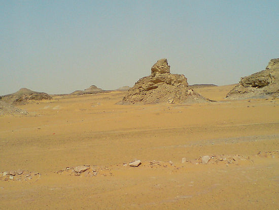 Tatsächlich soll um 8 ein Bus fahren, aber der Fahrer wartet noch, bis sein Toyota Hiace voll besetzt ist, und so wird es halb neun. Wir verlassen die Stadt und überqueren den Assuan-Staudamm. Mit dem letzten Grün, was wir auf unserer Fahrt sehen, verabschiedet sich hier die Zivilisation. Knapp 300 Kilometer Wüste. Nichts als Sand und bizarre Felsformationen. Den nördlichen Wendekreis haben wir längst hinter uns gelassen und aus dem Lautsprecher tönen Koranrezitationen, ein Gefühl, wie im tiefsten Arabien. Ab und zu hält der Kleinbus an, und einer der vermummten Fahrgäste steigt aus und geht in der vormittäglichen Gluthitze der Ostsahara ein paar unscheinbaren Spuren im Sand nach, die irgendwo ins Nichts, in ein kleines verlassenes Oasendorf führen mögen. Immer wieder scheint Sand in den Senken der Straße zu liegen, der beim Näherkommen flüssig wird, verschwimmt und sich dann plötzlich ins Nichts auflöst. Links flirrt die heiße Luft über dem Sand, als wäre da ein großer See, aber der Nassersee ist zu weit weg. Zwei mal müssen wir einen Checkpoint passieren, an denen die Polizei die Ausweise kontrolliert, aber die Beamten haben keine Probleme damit, dass ein Ausländer mit an Bord ist.