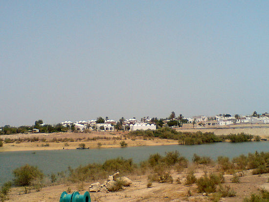 Auf einer Anhöhe liegt die Tabiya-Moschee in einem kleinen grünen Gärtchen. Von hier hat man einen schönen Blick über die Häuser der Stadt, den Nil und die dahinter liegende Wüste.
