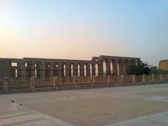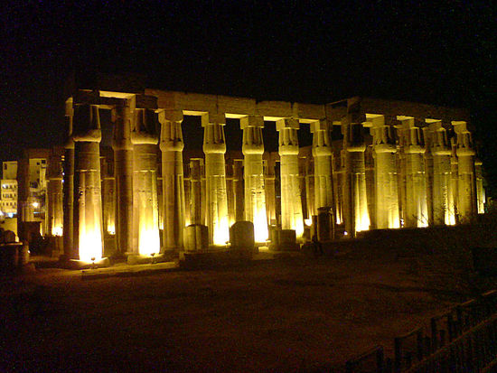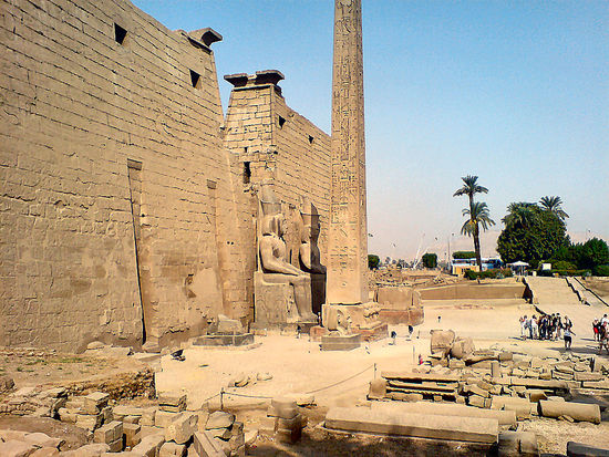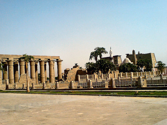 Mein Hotel ist nur wenige Taximinuten vom Bahnhof entfernt. In Anbetracht auf die Anschläge im Jahr 2006 sind die Sicherheitsvorkehrungen sehr hoch. Wer ins Hotel will, muss durch einen Metalldedektor gehen, wie an einem Flughafen. Ein uniformierter Beamter will kurz in den Koffer sehen. Dann entschuldig er sich und sagt, dass müsse sein. Ich mach mich kurz frisch und bin auch schon wieder unterwegs Richtung Luxortempel, der unweit in der Innenstadt am Nilufer thront. Hauptsächlich hat Pharao Amenophis lll daran gebaut. In den folgenden Jahrhunderten erweiterten Tutunchamun, Ramses und Alexander der Große das Bauwerk. Ein schlanker Obelisk, bis obenhin mit ägyptischen Hieroglyfen verziert, ragt vor dem Eingang in den blauen Himmel.