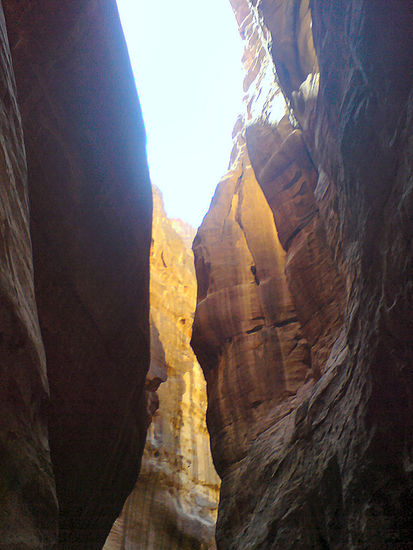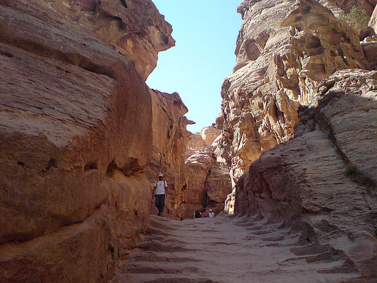 Der Eintritt kostet 22 JD, die sich aber lohnen sollen. Der Weg führt durch eine enge, tiefe Schlucht. Das Getrappe von Pferden hallt tausendfach an den hohen, rötlichen Felswänden wieder und scheint immer näher zu kommen. Für Besucher, die nicht so gut zu Fuß sind, ist ein Reittier fast unerlässlich, wenn sie bis zum Ed-Deir am Ende des Areals kommen wollen.