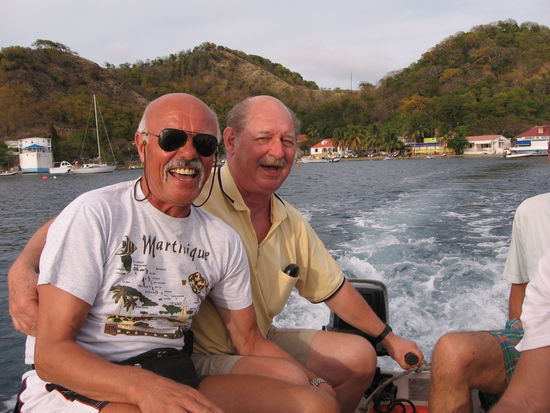 Was danach kommt ist seglerisch weit uninteressanter, im Windschatten von Guadeloupe wechselt der Wind zwischen Flaute, zeitweisem Nordwest und leichter Nordostbrise, Gelegenheit genug den Rudergänger laufend anzumachen, bis Sigi das Signal gibt: Motor an zu einer kleinen Ankerbucht, in der und AnnMarie mit einem opulenten Abendessen überrascht.