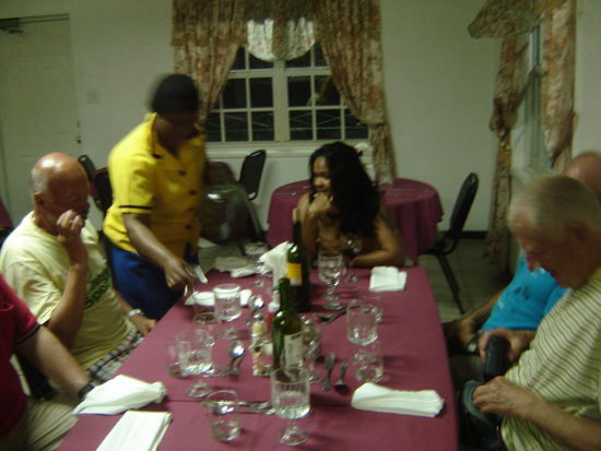 Hinter zahlreichen Rumbuddeln hinter der Theke entdecken wir sogar zwei volle Flaschen besten argentinischen und chilenischen Wein, von denen die Wirtin noch gar nichts wußte. Die bestellen wir zum Rindersteak mit exotischen Gemüsen und werden festlich bewirtet.