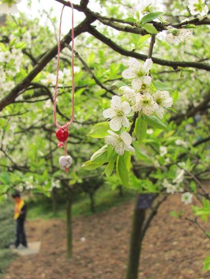 Und dann gab es noch einen Ausflug, der mir viel Spaß gemacht hat: Meine Kollegen habe mich in den Nanshan Zhi Wu-Park mitgenommen. Morgens um halb neun am 13. März gings los. Wir sind mit dem Bus nach Chongqing und sind dort irgendwo ausgestiegen um in einen anderen Bus umzusteigen. Leider habe ich so gar keine Ahnung wo das war, aber die paar male, die ich jetzt in der Stadt war, habe ich jedes mal gedacht: Chongqing ist ürsprünglicher als andere Großstädte in China (naja, jede Stadt ist hier irgendwie ne Großstadt....). Es ist irgendwie noch ein bißchen exotischer. Da hängt das Fleisch auf der Straße zum Verkauf, dort werden die Hühner fürs Essen gerupft, es gibt das unterschiedlichste Essen.... Wir sind dann noch mal eine Stunde mit dem Bus gefahren und standen die Straße zum Park hin auch im Stau, weil wirklich jeder dort hin wollte. Der Grund dafür waren die blühenden Bäume. Es gab unzählige Menschen die Picknick gemacht haben, spazieren gegangen sind, natürlich gab es auch wieder Brautpaare die sich vor den blühenden Bäumen fotografieren ließen... und wir halt mittendrin machen genau das gleiche.