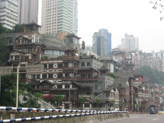 Am Ende haben wir nur noch 18 Panda-Bären gehabt. Den Rest hat der Wind davon getragen. Als es Abend wurde haben wir nochmals den Yangse-Fluß überquert und haben auf der anderen Seite gewartet, bis die Lichter angingen, haben Skyline-Fotos gemacht und sind noch lecker essen gegangen.
