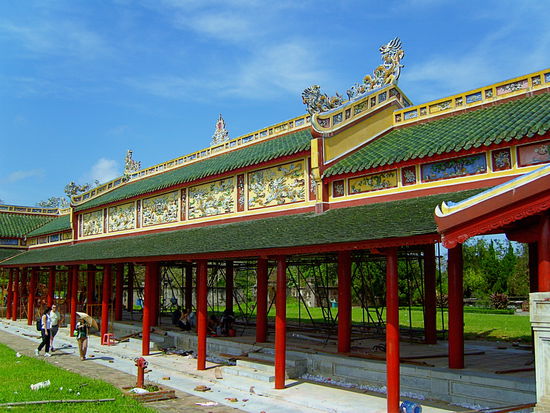 Weiter geht es zur verbotenen Purpurstadt, dem berühmten Kaiserpalast der Nguyen-Kaiser. Er hat die Größe mehrerer Fußballfelder. Einige Gebäude sind in einem sehr schlechten Zustand, aber dank unterschiedlichster Förderquellen beginnen im Palast Renovierungen zum Erhalt des Bauwerkes. Das Theater befindet sich in einem recht ordentlichen Zustand und es kommt dort zu Musikaufführungen im Saal.
