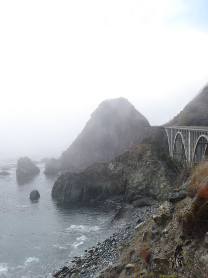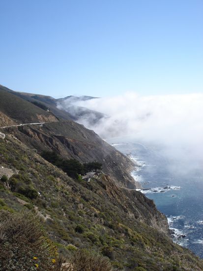 Kaum in Carmel angekommen schien dann doch die Sonne und wir hofften, wenigstens auf dem Highway Nr 1 der Kueste bis San Simeon entlang etwas mehr Glueck zu haben. Doch dieser Tag schien tatsaechlich unser Pechtag zu sein. 90% der gesamten Strecke lag in dickstem Nebel. Die kurzen Abschnitte, die in der Sonne lagen, nutzten wir dann umsomehr, um doch noch ein paar schoene Bilder zu knipsen. Wir verzichten an dieser Stelle darauf im Detail zu beschreiben, wie wir es an diesem Tag auch noch geschafft haben, einige Dollars in den Sand zu setzen. Nur so viel: Kassenhaeuschen ueberall! Wir beschlossen an diesem Abend, nirgendwo mehr hinzufahren, wo man eine "fee" bezahlen musste.