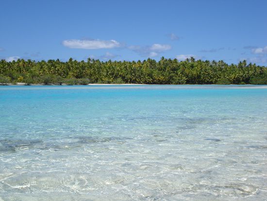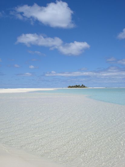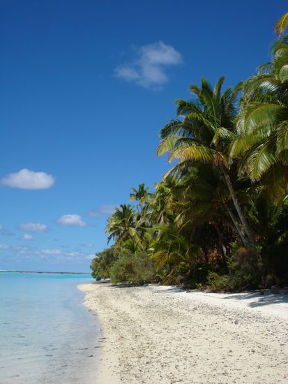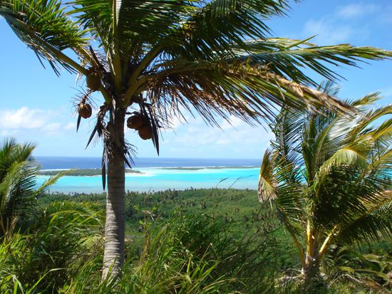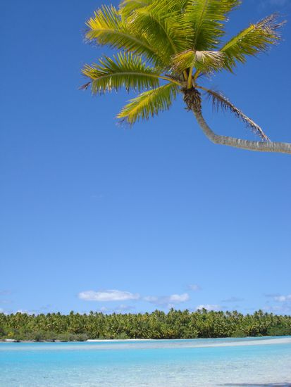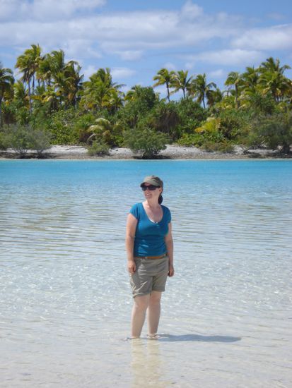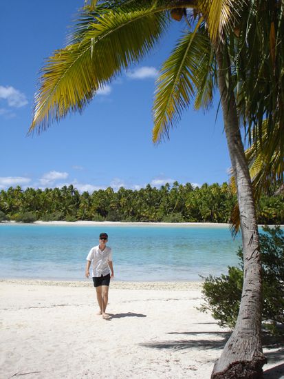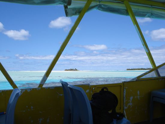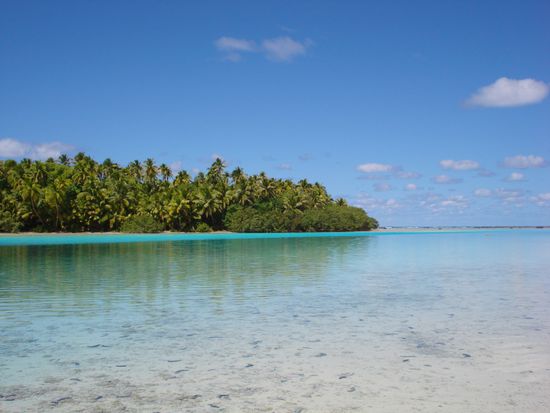 Ein Highlight unseres Aitutaki-Aufenthaltes war in jedem Fall die Lagoon Cruise. Aitutaki bildet mit seinen vorgelagerten, unbewohnten kleinen Inseln (Motus genannt) ein Atoll und schliesst eine Lagune mit ein. Viele Touristen kommen nur fuer diese Lagunentour fuer einen Tag nach Aitutaki. Es gibt zahlreiche Anbieter. Im Guestbook in unserer Villa lasen wir viel Gutes von "Puna" und seinem Yellow Boat, so dass die Wahl nicht schwer viel. Schon auf der Ueberfahrt zu unserem ersten Schnorchelstopp in der Lagune, sahen wir einige richtig grosse Meeresschildkroeten, die an die Wasseroberflaeche kamen, um Luft zu schnappen. Der Start war geglueckt. Beim Schnorcheln sahen wir noch viele weitere Meeresbewohner und die Korallen waren viel schoener, als diese bei unserem Strand. Einfach wunderbar! Wir besuchten Honeymoon Island (heisst scheinbar so, weil das erste Paar, welches dort geheiratet hat, diesen Namen waehlte), eine Sandbank in der Lagune und One Foot Isand, wo es ein BBQ gab. Das Essen war sehr lecker. Wir waren allerdings nicht ganz sicher, ob das Essen oder die starke Sonne daran Schuld war, dass es Regula mitten in der Nacht uebel und schwindlig wurde.. Aber das spielt im Nachhinein auch keine Rolle. One Foot Island ist definitv der schoenste Flecken Erde, den wir je gesehen haben. Da koennen selbst die Malediven nicht mithalten. Wir waren ueberwaeltigt.