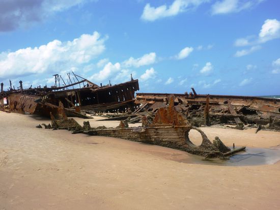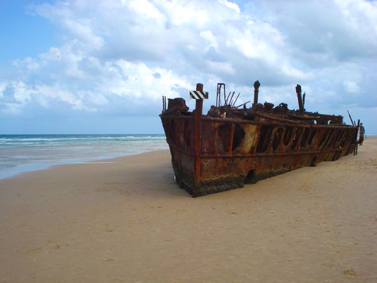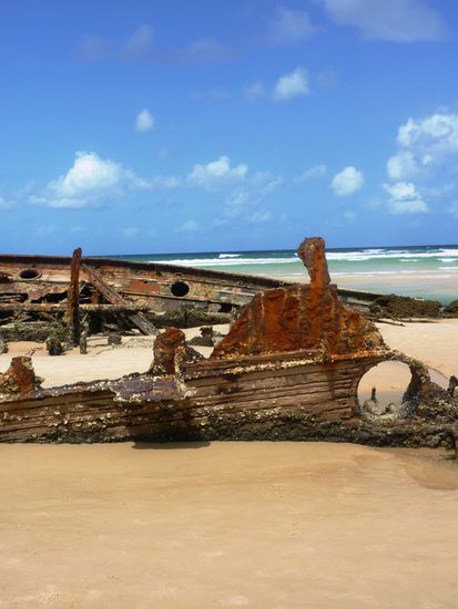 Wir besuchten am Nachmittag als erstes das Wrack der "Moheno", ein Schiff welches bei einem Sturm 1935 an der Ostkueste von Fraser Island gestrandet ist und nicht mehr flottgemacht werden konnte.