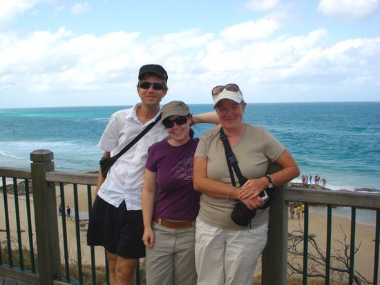 Danach folgte ein wirklches Highlight! Von "Indian Head" aus konnten wir einen Buckelwal verfolgen welcher von den warmen Gewaessern im Norden Richtung Sueden in die Antarktis zog. Einige auf dem Aussichtspunkt glaubten, dass neben dem grossen Wal noch ein Baby mitschwimmt. Wir konnten dies aber nicht mit Sicherheit feststellen. Trotzdem war es ein grossartiges Schauspiel, einen Wal auf seiner Reise zurueck in den Sueden zu beobachten. Von "Indian Head" aus hat man auch die Moeglichkeit aus 60m senkrecht in den Ozean zu schauen. Leider konnten wir an diesem Tag keine Haie sehen, nur der Schatten eines Rochen war zu erkennen.