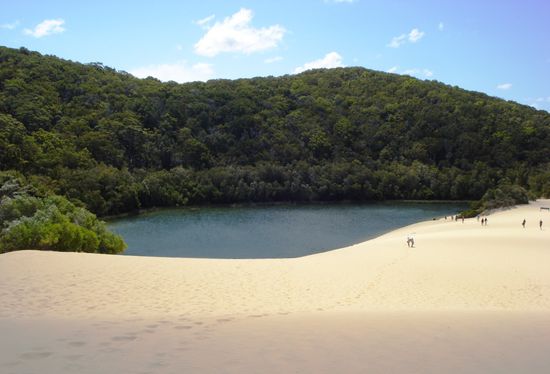 Als zweites Stand der Lake Wabby auf dem Programm. Dieser See liegt einzigartig hinter einer Sandduene von welcher er langsam verschluckt wird. Auch dort genossen wir nach dem Walk ueber die Duene ein erfrischendes Bad.