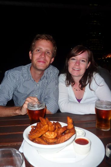 Ausserdem noch ein weiterer Tipp: Immer nach den Specials fragen. Besonders an Wochentagen oder am Sonntagabend gewaehren diverse Bars und Restaurants Specials. So bekamen wir z.B. ein 300g Steak mit Chips&Salad fuer $15 statt wie auf der Karte angegeben $25. Oder einen Jug ("ein Krug", ca, 1.1 L) Bier mit Wedges fuer $13 obwohl sonst schon der Jug alleine $14 kostet... Oder einen Cosmopolitan fuer $5 statt $15. An diesem Abend haben wir ziemlich abgeraeumt...