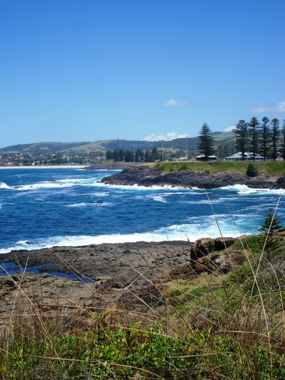 Ganz unerwartet aber sehr erfreulicherweise hatten wir wieder grosses Glueck mit dem Wetter (eigentlich war fuer die naechsten Tage Regen vorhergesagt..). Die Kueste ist hier ganz anders als noch in Queensland, etwas rauher, sehr viel gruener und mindestens genauso schoen. Obwohl es eigentlich sehr heiss war, konnte es an den Straenden oder Aussichtspunkten am Meer doch zwischenzeitlich aufgrund des heftigen Windes recht frisch werden. Am ersten Tag fuhren wir mit einigen Zwischenstopps bis nach Batemans Bay.