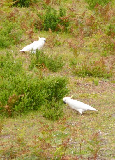 Wir uebernachteten in Foster. Kein besonderer Ort eigentlich, aber einer der dem "Prom" am naechsten gelegenen. Die Suedspitze des Wilsons Promontory National Parks ist der suedlichste Punkt des australischen Festlands. Der Nationalpark beheimatet sehr viele Tiere. Insbesondere Kangaroos, Wallabies, Emus und Wombats. In unserem Reisefueherer stand, dass man auf dem "Lilly Pilly Gully Walk" auch Koalas sehen kann. Wir sahen leider mal wieder keine . Wahrscheinlich aber vor allem deshalb, weil es in diesem Jahr genau in diesem Parkteil gebrannt hat.. Emus haben sich uns auch keine gezeigt. Dafuer sahen wir Wallabies am Strassenrand und viele viele Kakadus .