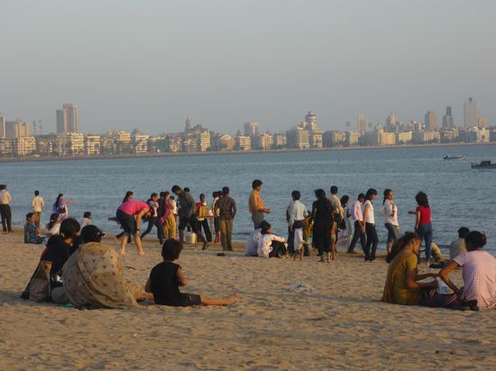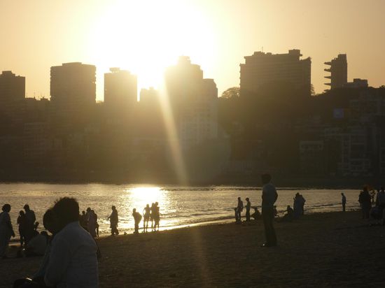 Spaeter waren wir mit dem Taxi noch am Chowpatti- Beach.