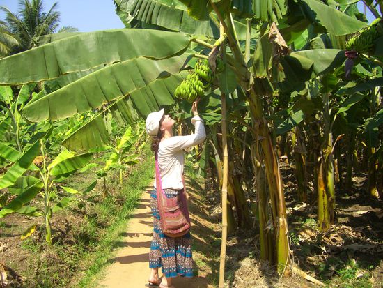Dafuer spazieren wir spaeter durch eine bluehende Bananenplantage in das gemuetliche Mangotreechillrestaurant und fruehstuecken erstmal. Wahnsinn wieviel Tag man hat, wenn man so frueh aufsteht