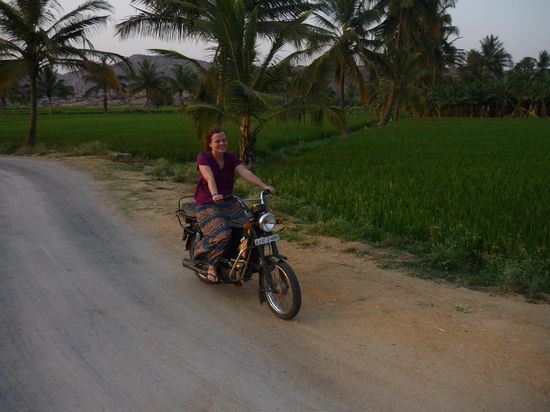 Ansonsten haben wir an dem Tag noch ein Moped gemietet und sind durch das irrsinnig schoene Hampihinterland gecruist, durch Doerfer, Reisfelder, kugelrunde Gesteinshaufen und alle Menschen lachen uns zu, winken und Kinder laufen schreiend neben uns her. Soviel ehrliche Offenheit und Freundlichkeit erleben wir zum ersten Mal bis jetzt.