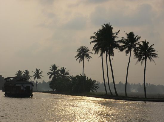 Wir schipperten sehr gemuetlich durch die keralischen Backwaters, einmal rund um Allepey und zurueck.