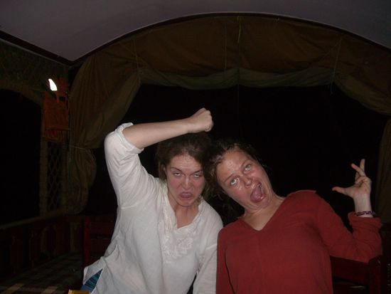 Das Schlafzimmer mit Bad, Ventilator und Moskitonetz war eins der bestausgestatteten, die wir bisher hatten. 3 Bedienstete kochten, bedienten und lenkten das Schiff fuer uns. Es gab Mitagessen nicht zu knapp, Kafee mit Pommes!!, ein ueppiges Abendessen und am naechsten Morgen Fruehstueck.