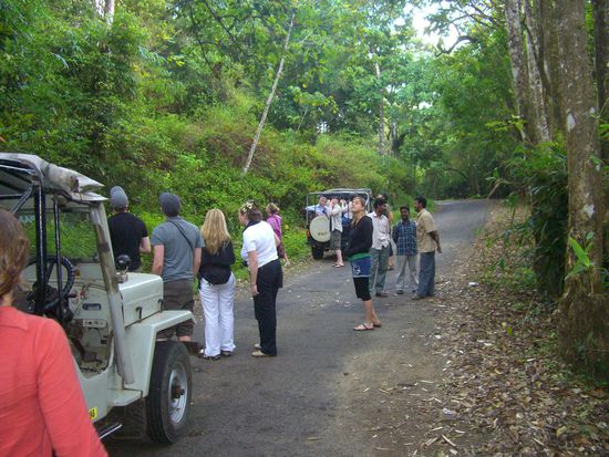 Wir waren nur zu zweit und freuten uns auf einen abenteuerlichen Trip in den einsamen Dschungel. Aber schon bei der ersten Chaipause in einer Teeplantage im Morgengrauen, wurden diese Hoffnungen zerstreut. Da standen massenweise Jeeps, und mehr Bleichgesichter, als wir in der ganzen letzten Woche gesehen hatten schluerften ihren Chai.