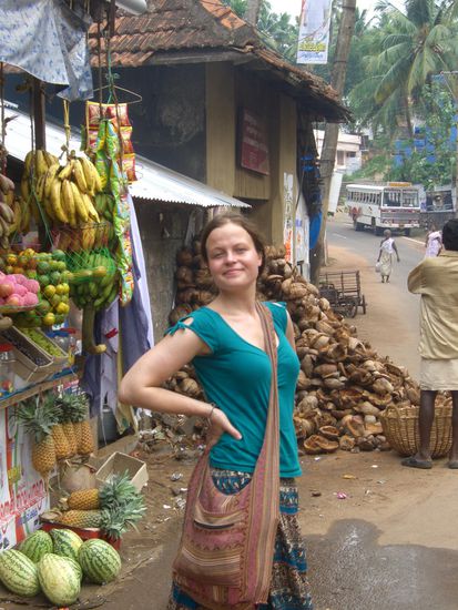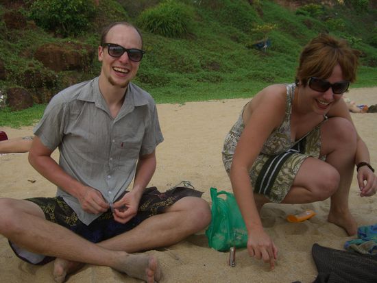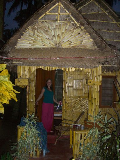 In zwei verschiedenen Ruettelbussen verbrachten wir ca. 8 Std, bis wir endlich in Varkala ankamen. Wir quartierten uns wieder in ein Bambushuettchen ein, das allerdings etwas bescheidener war als seine Vorgaenger.