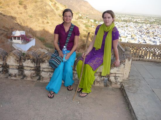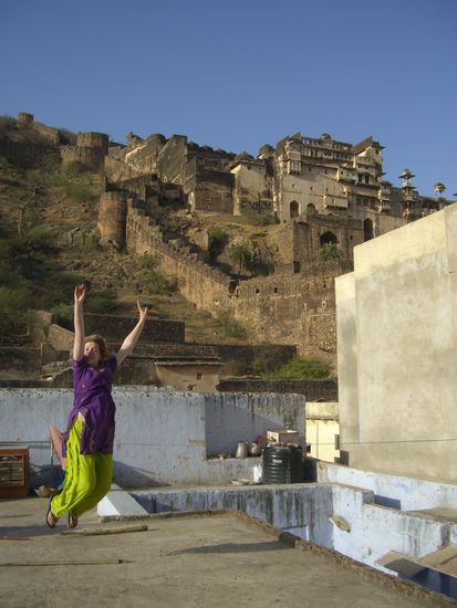 Herzlichst von den Australiern verabschiedet, verkruemelten wir uns in den Nightsleeperbus und liessen uns nach Bundi schaukeln. Kaum eingeschlafen schrie es Bundi, Bundi und wir fielen noch im Daemmerzustand aus unseren Kojen und in das naechste Tuktuk, das uns im nachtschlafenen Bundi vor verschlossenen Hoteltueren absetzte. Obwohl es doch schon 5 Uhr frueh war!!! Also folgten wir Schleppi in sein Familienhaveli und mieteten ein riesiges Zimmer mit arabischem Erker und eigenem Zugang zum Dach fuer fast kein Geld. Auf dem Dach schliefen noch Schleppis Geschwister, seine Mutter hielt Nachtruhe auf dem Gitter ueber dem Innenhof und Papi sass schon unten vor dem Fernseher. Sehr familiaer das Ganze!