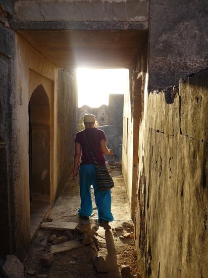 Da oben hat sich dann mal wieder jeglicher Sinn fuer Realitaet verabschiedet und wir schlichen mit runtergeklappten Kiefern ueber dieses riesige, voellig einsame Areal, in dem die mehr als gut erhaltenen Ueberreste dieser gigantomanischen Palastfestung eines vor Reichtum platzenden Maharadjas verstreut lagen.