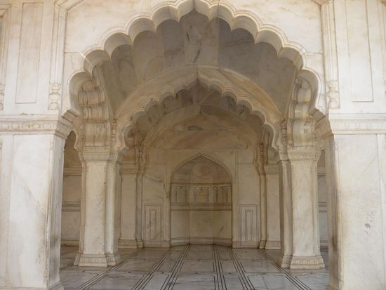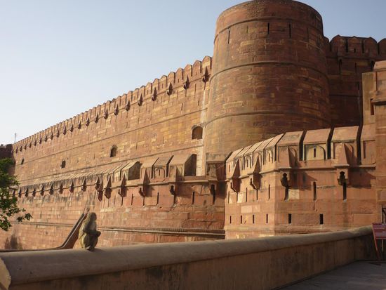 Ausserdem fuhr ich mit einer Billig- Fahrrad- Rikscha (eigentlich haette ich das aus dem Lonely Planet besser wissen muessen, ich hatte wirklich hart zu kaempfen, nicht bei einem Basar, einem Souvenierladen oder einer Wechselstube zu landen) zum Agra- Fort,