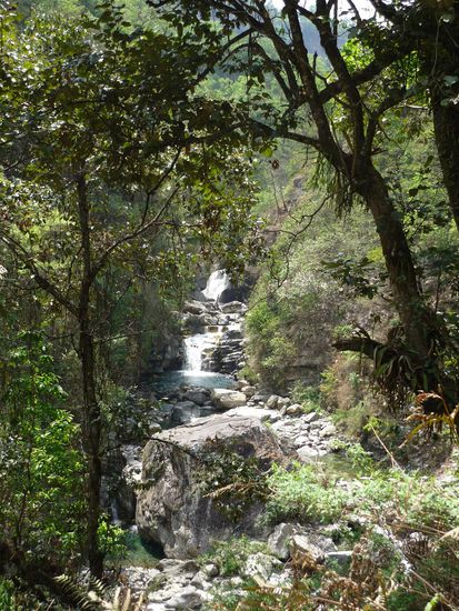 Ab Birethanti wurde es so richtig schoen, obwohl ich ab da schon so langsam immer groessere Probleme mit meiner Huefte bekam und immer schlechter aufwaerts steigen konnte. Ich biss die Zaehne zusammen und schleppte mich doch bis zu meinem Zielort fuer den Tag, nach Sudameth und dann, weils da kein Zimmer gab, sogar noch einen Ort weiter, nach Hile. Das war sicher mit einer der anstrengendsten Tage in meinem Leben, brachte mich aber auch an mitunter die schoensten Plaetze, die ich je gesehen hab. Das letzte Stueck ging ich in Begleitung von einigen sehr netten Traegern. Einfach unglaublich, was die da fuer Lasten hochschleppen. Dagegen war mein Rucksack ja einfach nur popelig.