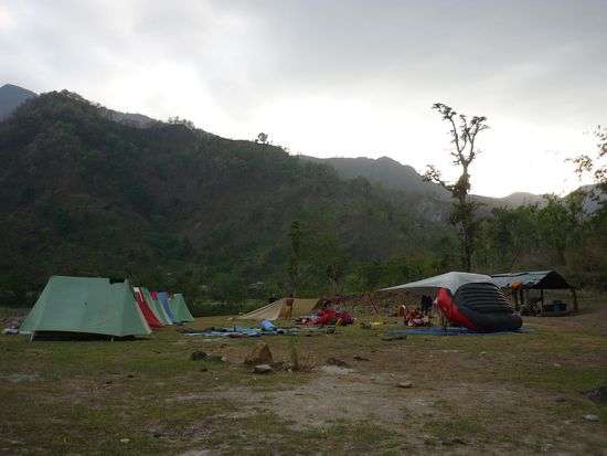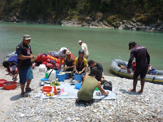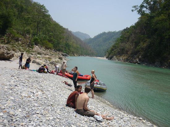 Da ich des Nichts- Tuens im ruhigen und sehr touristischem Lakeside- Viertel in Pokhara mehr als ueberdruessig wurde und ja auch noch irgendwas mit meiner Zeit in Nepal anfangen wollte, wenn schon das Trekken flach fiel, buchte ich eine 2- taegige Rafting Tour auf dem Seti- River fuer ungefaehr 55 Euro mit Verpflegung und Transport inklusive.