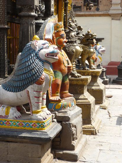 Waehrend Bhaktapur hinduistisch gepraegt ist, ist Patan eine ueberwiegend buddhistische Stadt, mit unzaehligen, oft in Hinterhoefen versteckten Tempeln. Einen eher hinduistischen Durbar Square gibt es aber natuerlich dennoch. Ungewohnt viele kulturelle Infos diesmal, bin richtig stolz auf mich..