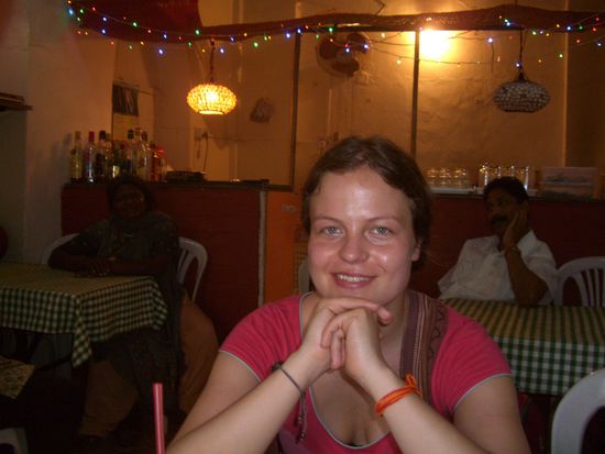 Die Omi macht den Fernseher an, da bruellt in unmenschlicher Lautstaerke eine indische Sendung los. Sie fragt uns, was wir denn wollen, ich haett gern ein kleines Bier, das ist ummoeglich sagt sie, es gibt nur ganz grosse. Also eben Cola. Wir bestellen Essen, aber sie setzt sich and den Nachbartisch und faengt an, in unverstaendlichstem Englisch auf mich einzureden, waehrdend der Fernseher gnadenlos weiterbruellt. Ich verstehe kein Wort und nicke freundlich vor mich hin. Sie scheint allein in dem Laden zu sein, deswegen fragen wir uns, wer wohl unser Essen zamsetzen mag. Sie macht keine Anstalten irgendwas zu kochen, labert weiter und mir faellt es schwer, keinen Lachkrampf zu kriegen, v. a. weil die Lisa mit dem Ruecken zur Omi sitzt und dauernd vor sich hinlacht. Naja, noch haben wir etwas Zeit bis unser Nachtbus abfaehrt.