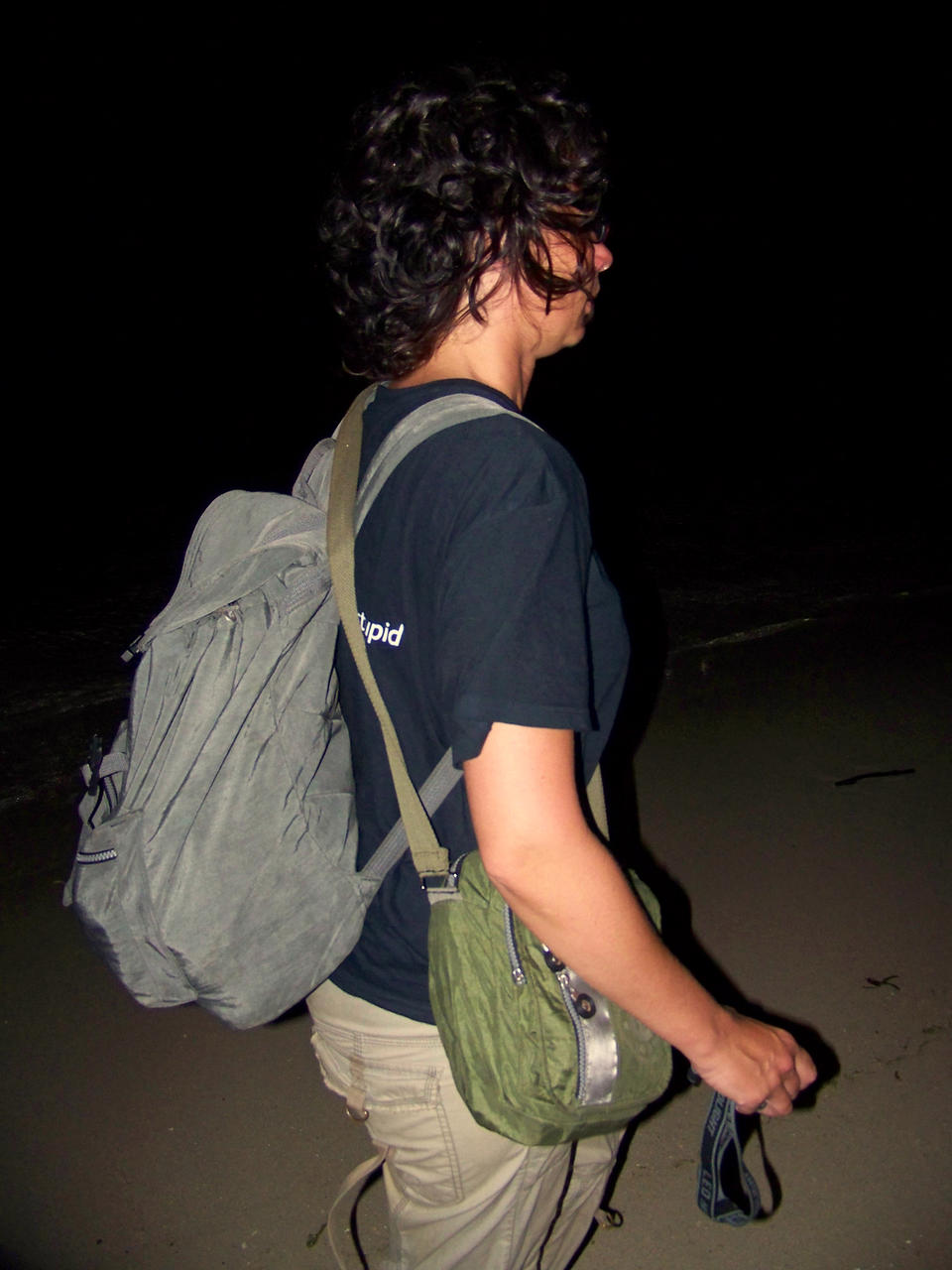 Der hatte die Zeit auch nicht nutzlos verstreichen lassen. Auf der Sainte Marie-Seite waren kurz nach meinem Verschwinden Autoscheinwerfer aufgetaucht. Also wildes Herumfuchteln mit einer Taschenlampe. Ohne Erfolg. Nach kurzem Halt verschwindet das Auto wieder. Nur 10 Piroggenminuten entfernt, doch unerreichbar für uns. Das Taxi, kein Zweifel, ist unwiederbringlich verloren. Dafür keimt neue Hoffnung. Denn keine 100m entfernt erschallen Rufe, die schnell näher kommen. Es ist der Fährmann, der nur etwas weiter den Strand entlang gewartet hat. Er will die Rücksäcke nehmen und losstürzen, doch Rolfi möchte auf mich nicht verzichten. Also hetzt nun der Schiffer hinter mir her und läßt Rolfi ein zweites Mal in dieser Nacht allein.