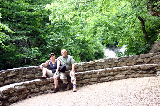 begegneten wir zwei älteren amerikanischen Paaren, die dieses Foto von uns machten. Sie warnten uns vor einer big snake, die sich irgendwo zwischen hier und den Lace Falls rumtreiben würde.