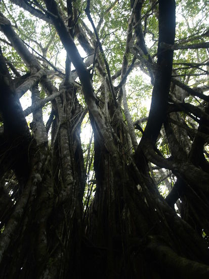 Dabei saust man entlang einer gespannten Leine durch das Blaetterdach des Regenwaldes (und das Blaetterdach ist irgendwo zwischen 20 und 30 Meter ueber dem Boden!!!).