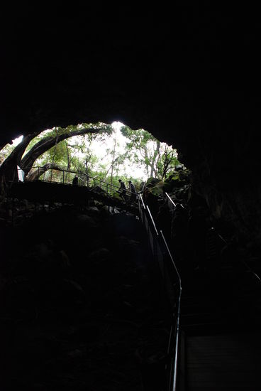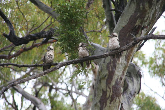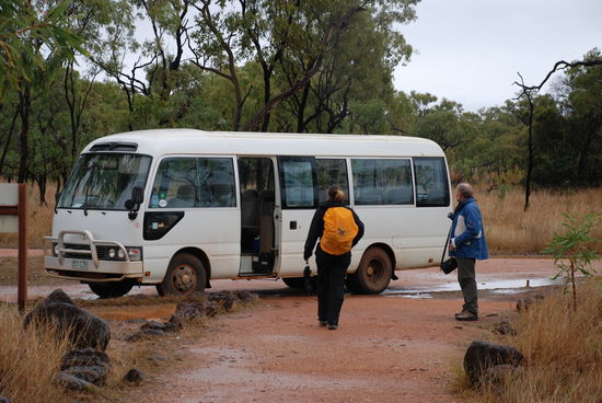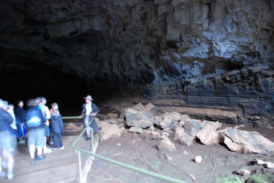 Die australischen Strassen im Landesinneren, sprich also im Bushland, kann man sich so vorstellen: eine geteerte Spur, daneben zwei Sandspuren. Alle fahren auf der geteerten Spur, wenn Gegenverkehr kommt, muss man auf die Sandspur ausweichen. Nicht ganz so lustig, wenn ein Roadtrainentgegenkommt und es matschig ist! Wir sind gerade im Undara Volcanic Lational Park angekommen, da hüpfen uns auch schon die ersten Riesenkänguruhs entgegen und beobachten uns. Auf einem Baum sitzen ein paar Cuckabooras (schreibt man das so?) und kreischen um die Wette. Da stört einen die Kälte fast nicht Schon geht unsere Tour los, zusammen mit anderen Touristen werden wir in einem Bus zu den Lava-Höhlen gefahren. Bin schon gespannt! Innen drin ist es stockfinster, aber unser Tourguide hat Scheinwerfer. Schaut echt cool aus, man erkennt die verschiedenen Lavaschichten und oben an der Decke tummeln sich die Fledermäuse. Hat richtig Spaß gemacht die Tour!