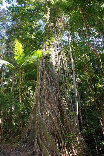 Anschließend stoppen wir im Regenwald, wo wir auf Entdeckungstour (auf befestigten Wegen) gehen. Wunderschöne üppige Vegetation, nur kalt ist es heute ganz schön Die Jacken hatten wir schon nötig! Sogar eine Phyton haben wir entdeckt. Eigentlich ist patrick fast draufgetreten, bis jemand aus der Gruppe geschrien hat: "Hey, watch out!!!" Na ja, zum Glück war es kein Taipan
