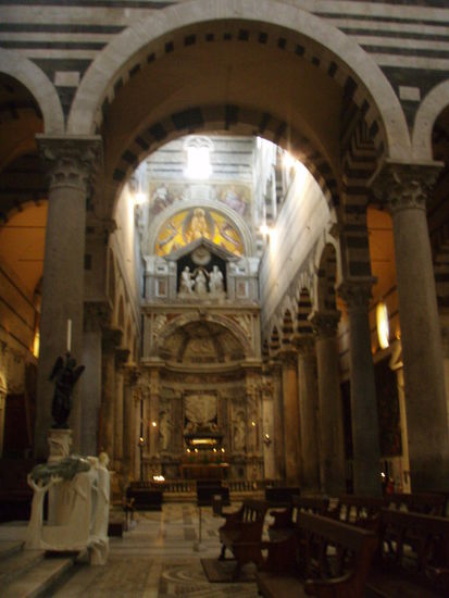 Etwas munterer machen wir uns auf zun Piazza dei Miracoli, und als wir schon fast da sind, kommt die Sonne heraus und es wird total warm! Ich zippe das Innenfutter meiner Jacke heraus und genieße die Sonnenstrahlen. Uns gelingen bei dem Licht gute Fotos vom Duomo Santa Maria Assunta und dem Battistero. Wir müssen noch etwas warten, dann dürfen wir in den Duomo hinein. Wunderschön, und da Nebensaison ist, sind auch wenig Touristen da (nur die ja immer und überall gegenwärtige Handvoll von Japanern ) ! Das Highlight von Pisa wartet noch: der schiefe Turm, der Torre Pendiente. "Fällt der eh nicht um?"