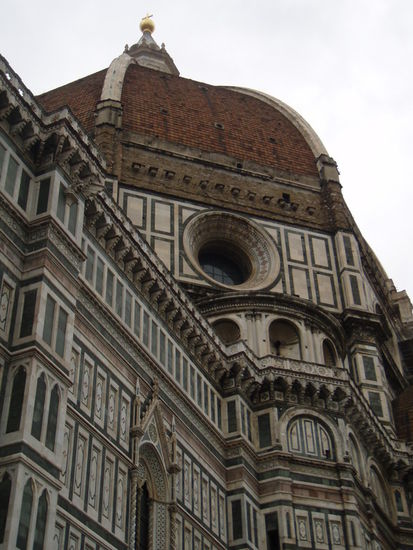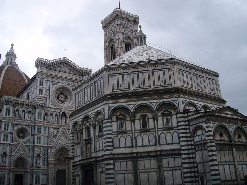 Es ist schon Mittag, als wir die mittelalterliche Stadt Florenz erreichen, die Hauptstadt der Toskana. Umgeben von Hügeln liegt sie im Becken des Arno, schon die Hinfahrt gefällt uns gut. Nachdem wir vom Bahnhof in die Altstadt marschiert sind, suchen wir uns ein Restaurant um endlich einmal typisch italienisch zu essen. Gerade als wir uns die Spaghetti schmecken lassen, fängt es draußen zu schütten an.